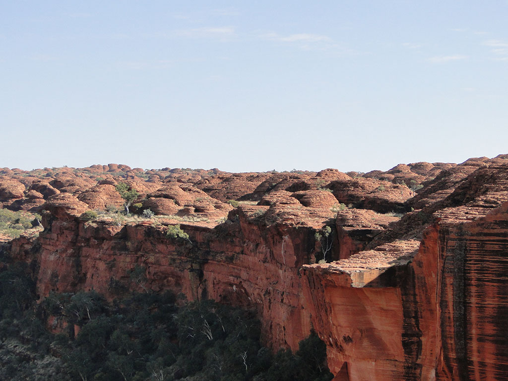 Para no variar, nos levantamos a las 5.30 para ir hasta King Canyon y hacer una ruta de 3 horas. Esa noche hizo menos frío y la mañana fue más llevadera. No había visto muchas imágenes de estos cañones y me llevé una grata sorpresa al llegar, son preciosos y tienen una vegetación muy curiosa. Una vez acabado la ruta y después de varias explicaciones de nuestra guía, fuimos a comer para coger rumbo de nuevo a Alice Spring, que llevaría unas 6 horas.