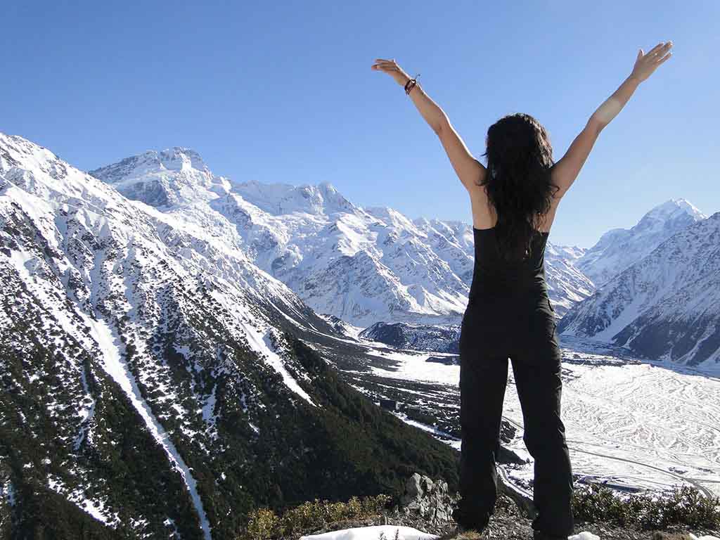 El viaje en autobús fue cómodo y agradable, con paraditas y con un conductor que nos iba contando cosas de cada sitio por el que pasábamos. Llegamos al mediodía y enseguida dejé las cosas en el albergue (que por cierto, está genial, de los típicos de alta montaña) y me fui a hacer una pequeña ruta de poco más de 2 horas. Alucinante! caminar con el Monte Cook de frente por medio de la nieve, ha sido increíble. Pensar que ayer por la mañana estaba en la playa y ahora estoy rodeada de nieve es genial, me encanta este cambio de escenario!