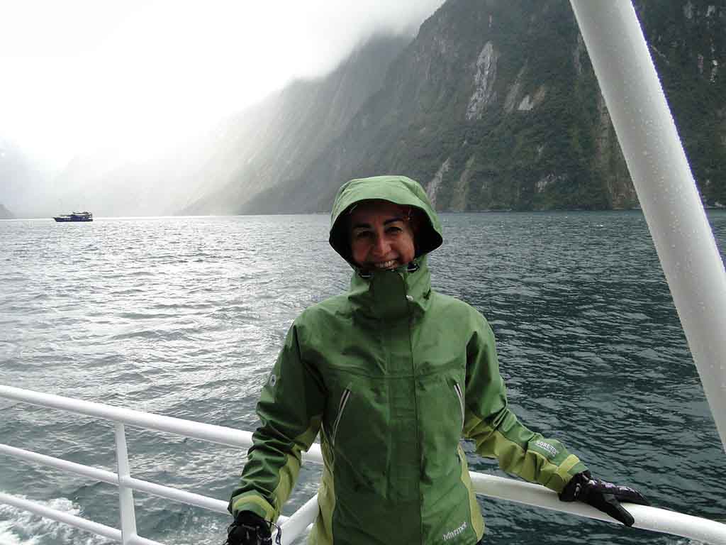 Y amaneció lloviendo…. y no paró de llover… Eso fue lo que me había dicho la chica de recepción y que era mejor así para ir a ver los fiordos. Le hice caso. No se como sería de otro modo, pero a pesar de la intensa lluvia y neblina, fue alucinante. Mis primeros fiordos! Dicen que lloviendo es más bonito porque hay más agua por todos lados, lo que no me puedo imaginar esto en primavera, con el deshilo, las cataratas tienen que ser espectaculares con mucha agua. Me temo que las fotos no van a reflejar la grandeza de lo que vi, pero os podréis hacer una idea. Como siempre en NZ, te sientes siempre muy pequeñito.