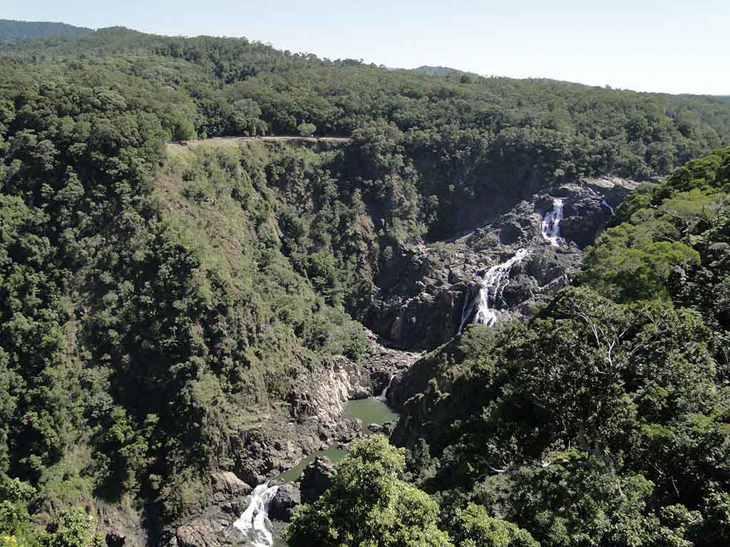 Después de varios pequeños recorridos nos fuimos a adentrarnos con el skyrail. Está bastante bien porque puedes ver puntos inaccesibles de otra manera, incluida una cascada bastante alta pero que en esta época del año llevaba poca agua.