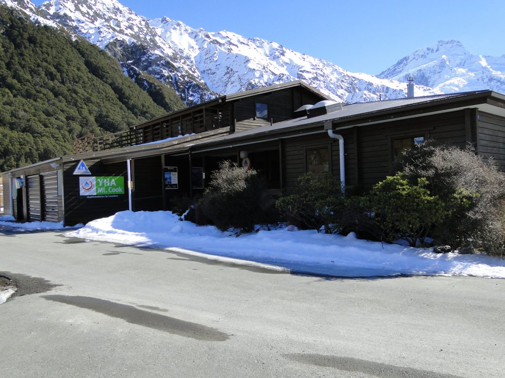 Monte Cook YHA, Mt Cook. Es realmente bonito, el típico de alta montaña todo de madera y con muchos servicios (lavandería, wifi, cocina,…), por 5$ tienes un pack para hacerte el desayuno. El precio es de 16$ Lo malo aquí es el tema de la comida, tienen un mini super muy básico y caro (es más caro el del Hotel que está cerca), así que es mejor traértela tú, a poder ser.