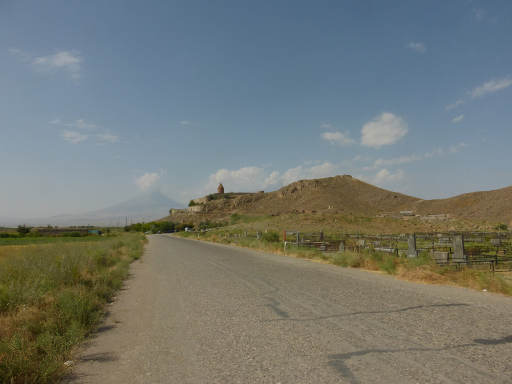 A lo lejos el Monasterio de Khor Virap y el pico del Ararat.