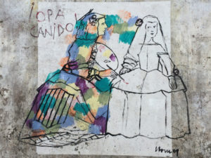 He dejado para el final esta singular ruta porque creo que es especial. Nació del corazón de un ferrolano, Eduardo Hermida, un pintor que inició una protesta junto con su hija pintando una Menina en una fachada abandonada. No podía prever la gran acogida y el gran impacto que esto iba a tener. Tanto ha sido, que se celebra anualmente un certamen de pintura rápida en donde artistas de todo el mundo buscan un hueco para plasmar su peculiar Menina.