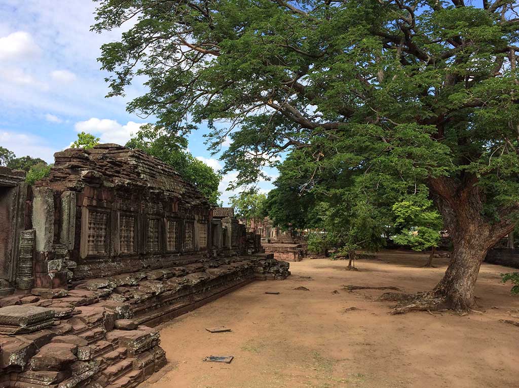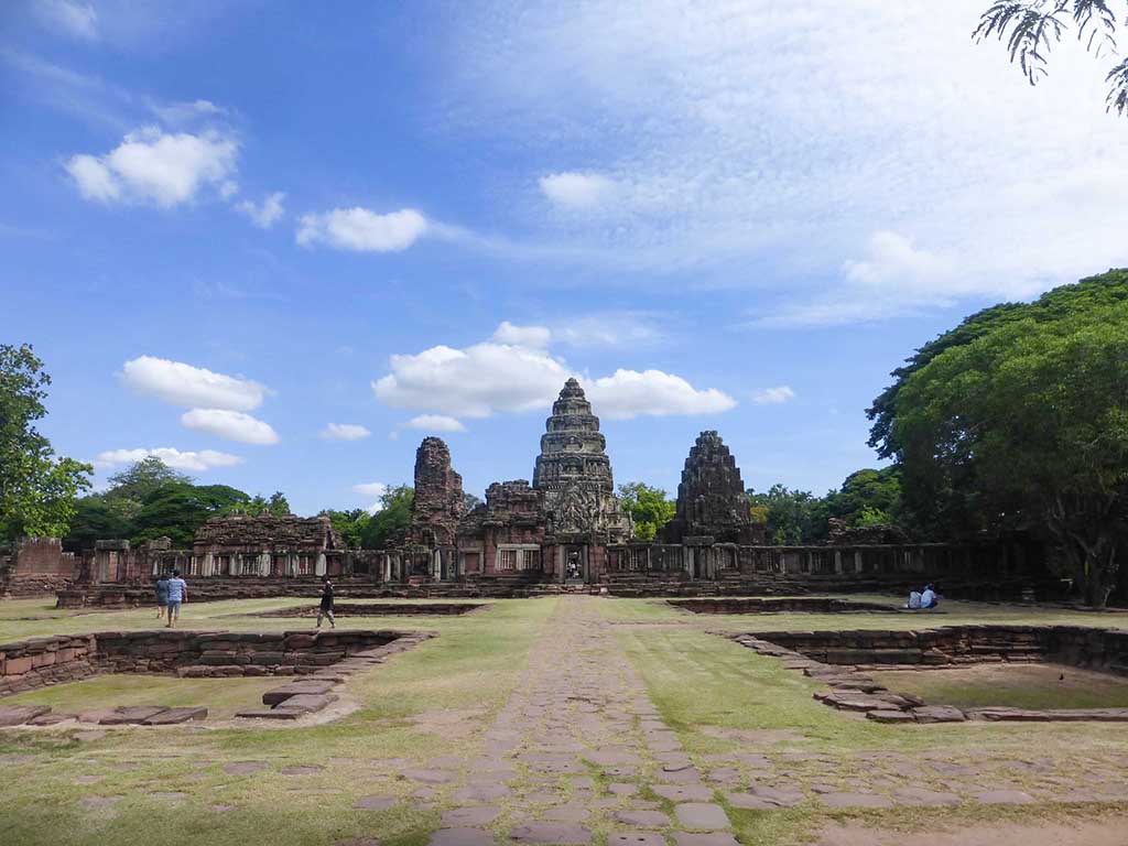 El templo de Phimai en Tailandia fue construido entre los siglos XI y XIII bajo el Imperio Jemer y estaba unido a Angkor por una antigua calzada. De hecho, su entrada principal está orientado hacia este lugar. Es uno de los templos jemeres más grandes de Tailandia con un área de 1020x580m.